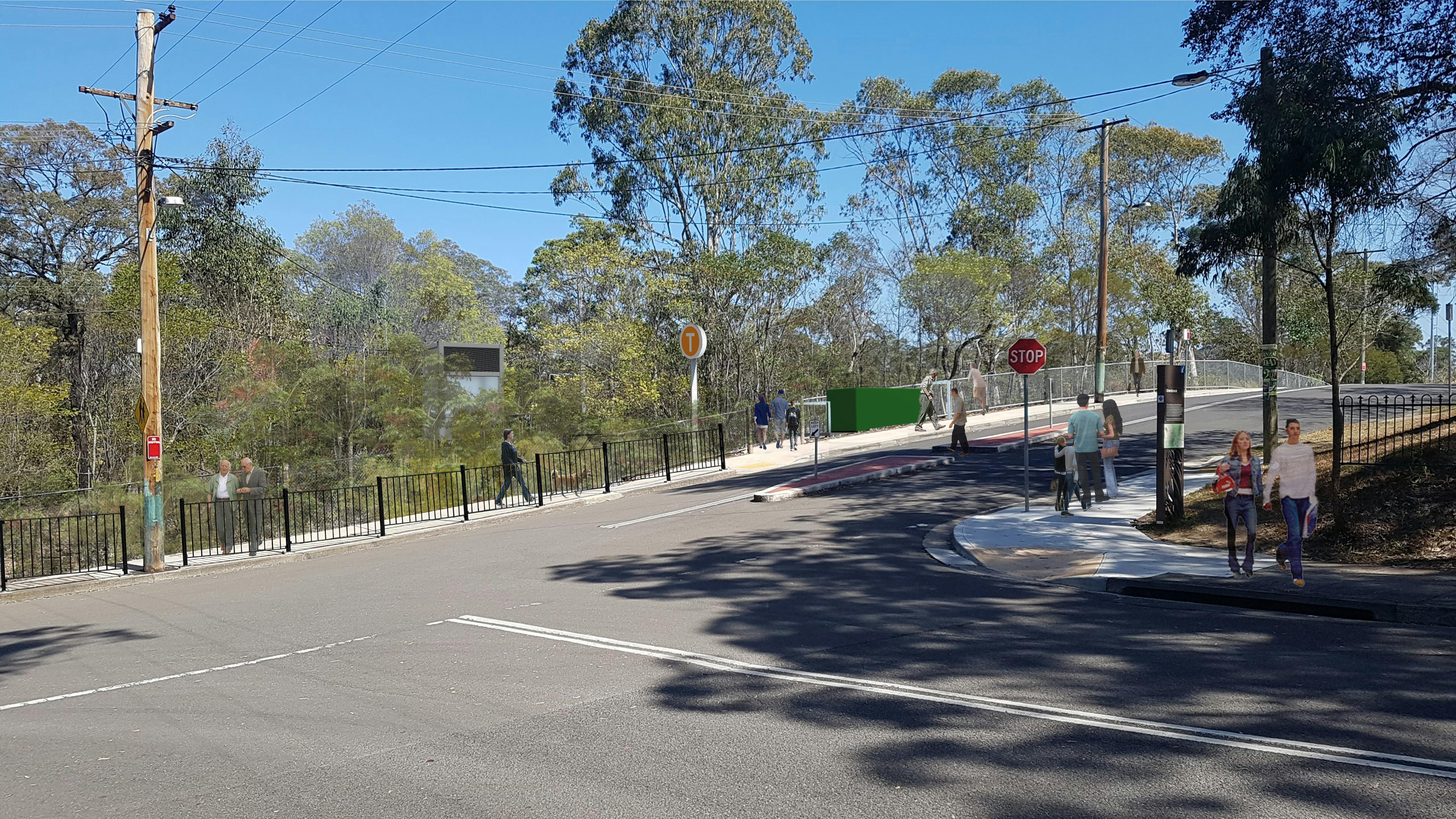Artist impression of the Glenbrook Station Upgrade from the corner of Ross Street and Burfitt Parade - subject to detailed design
