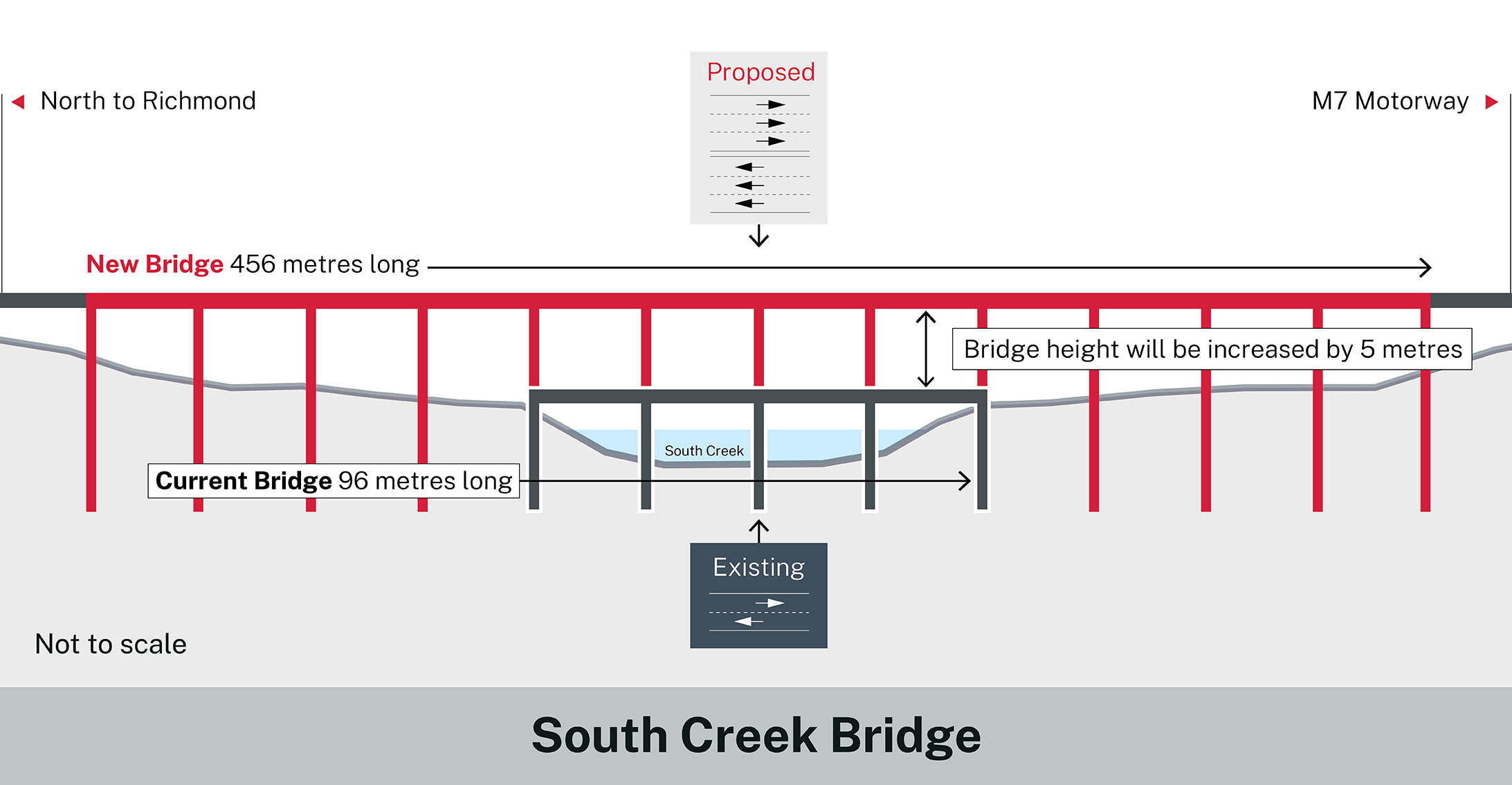 increasing the height of South Creek Bridge and adding extra lanes and active transport links